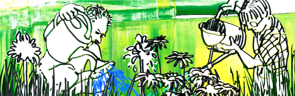 All three illustrations are deliberately quite concrete, the musicians cooperate with vacuum cleaners, kitchen sinks and watering cans, tangible things that even produce their own sounds, but none that are directly reflected in the music. However, the way they deal with them is suitable as an image of improvised cooperation.